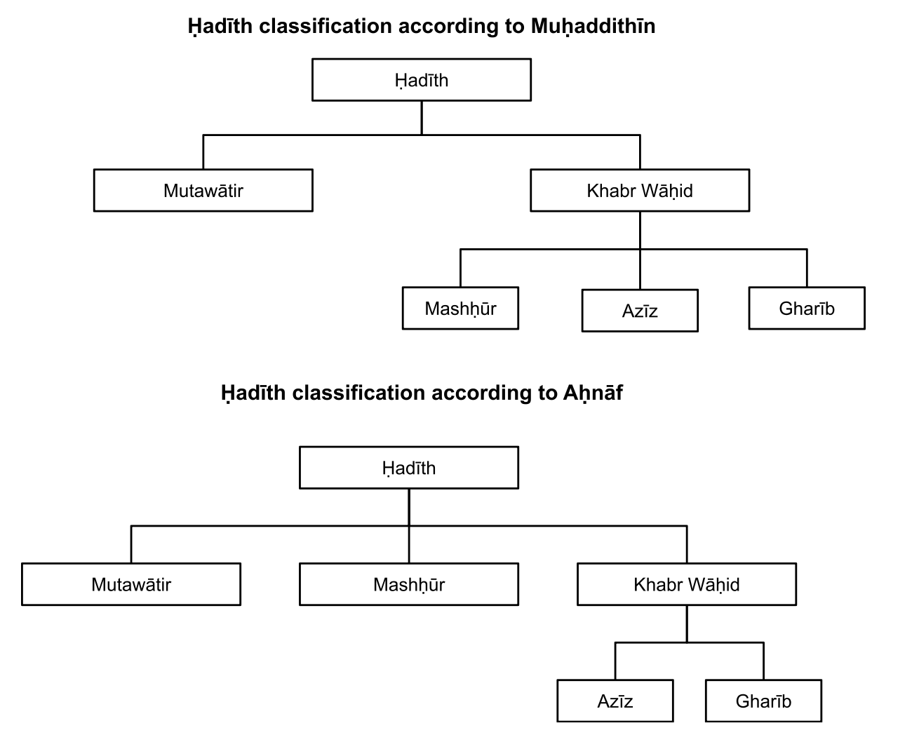 Therefore, according to the Aḥnāf there are three categories of Aḥādīth, whereas the muḥaddithīn have two categories.